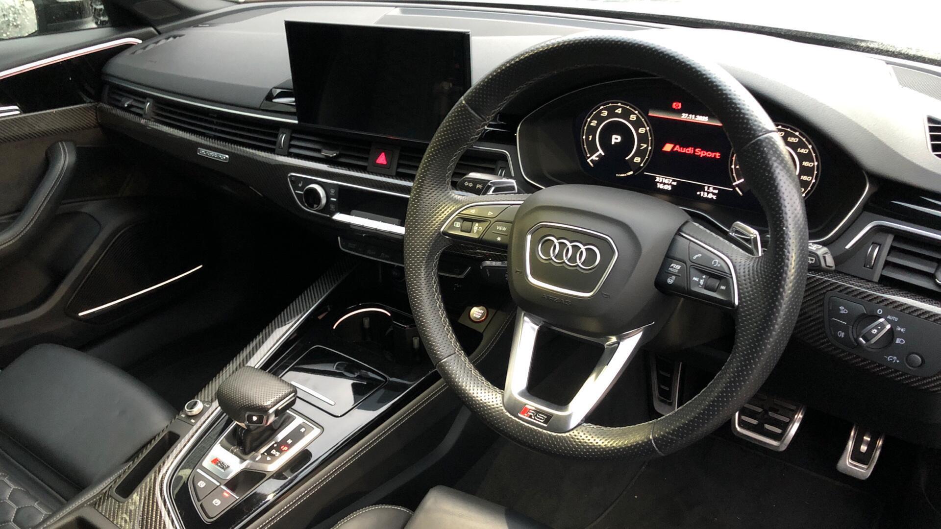 Audi RS4 Avant 2.9 TFSI V6 Carbon Black Estate Tiptronic quattro (ULEZ) – registration DX21XRR, 33,160 miles.