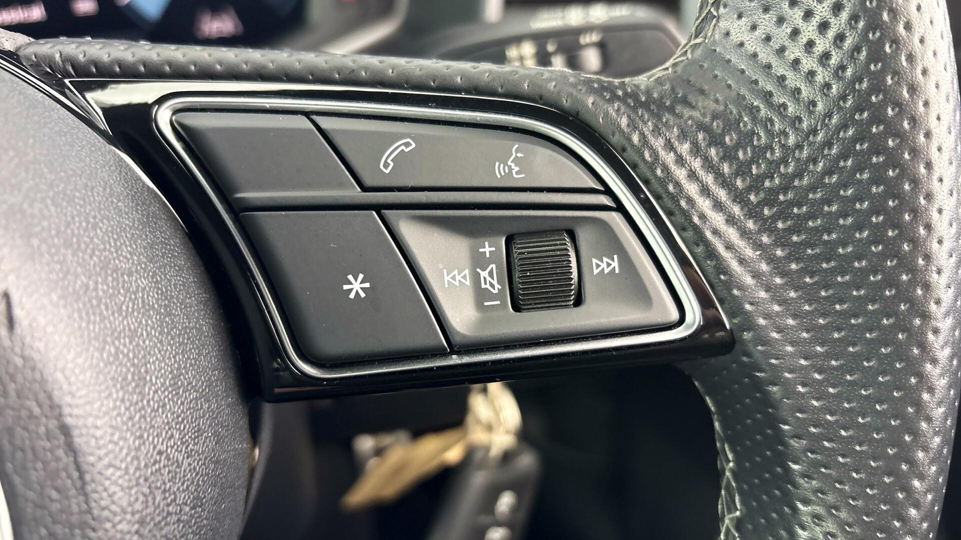 - 3-Spoke Leather Multi-Function Plus Steering Wheel with S Badging - Grips in Perforated Leather and Contrast Stitching