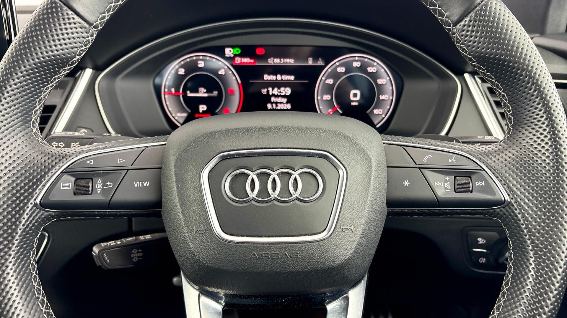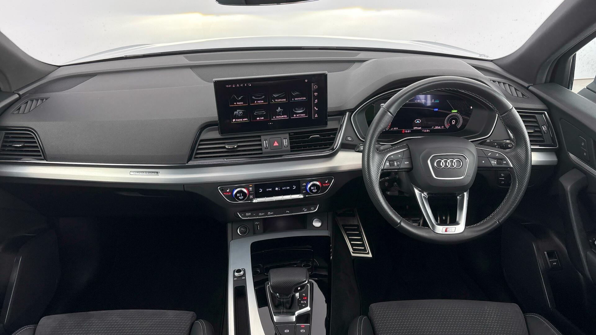 Finished in sporty S line trim, this Q5 delivers confident quattro capability and refined automatic driving, ideal for long journeys and family use alike. Key equipment includes striking 19” alloy wheels, the Audi Virtual Cockpit for crisp, customisable driver information, heated front seats for year-round comfort, and cruise control to make motorway miles effortless. Stay connected on the move with Bluetooth, and enjoy stress-free manoeuvring thanks to the rear-view camera plus front and rear parking sensors. Satellite navigation is also included, keeping every journey simple and seamless.