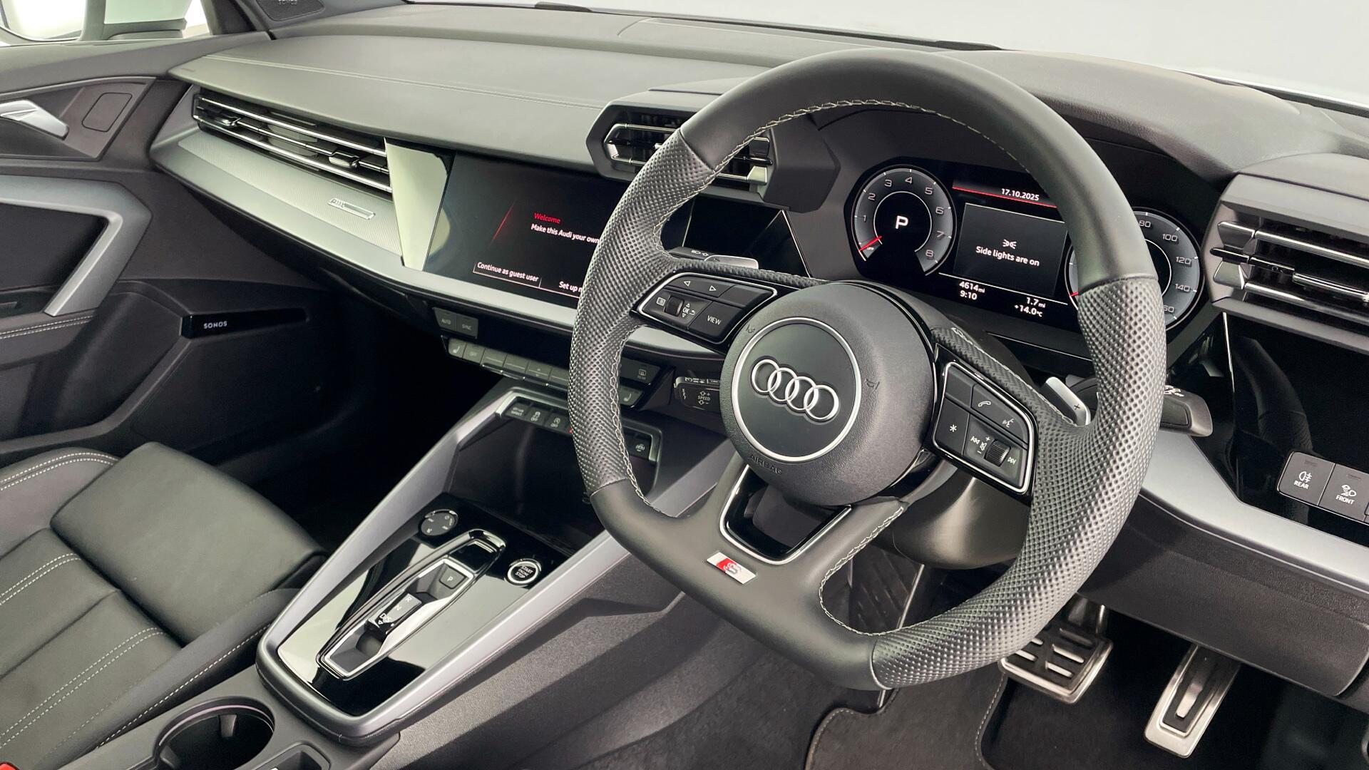 Inside, the S line cabin blends sportiness with everyday comfort: heated front seats take the chill off winter mornings, the Audi virtual cockpit puts crisp, configurable driver information right in your eyeline, and the Sonos premium sound system lifts every journey. Parking is effortless thanks to the rear camera, while Bluetooth connectivity and cruise control make longer drives simple and relaxing. Paired with the smooth S tronic gearbox, the 30 TFSI engine delivers impressive efficiency with a refined feel.