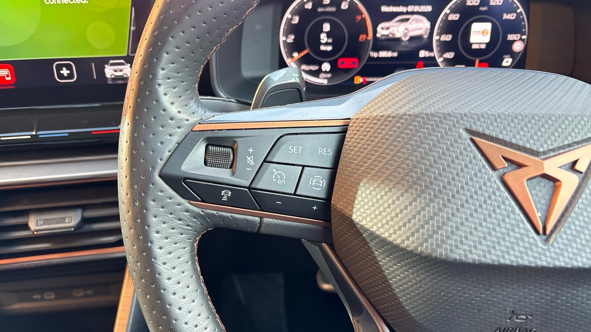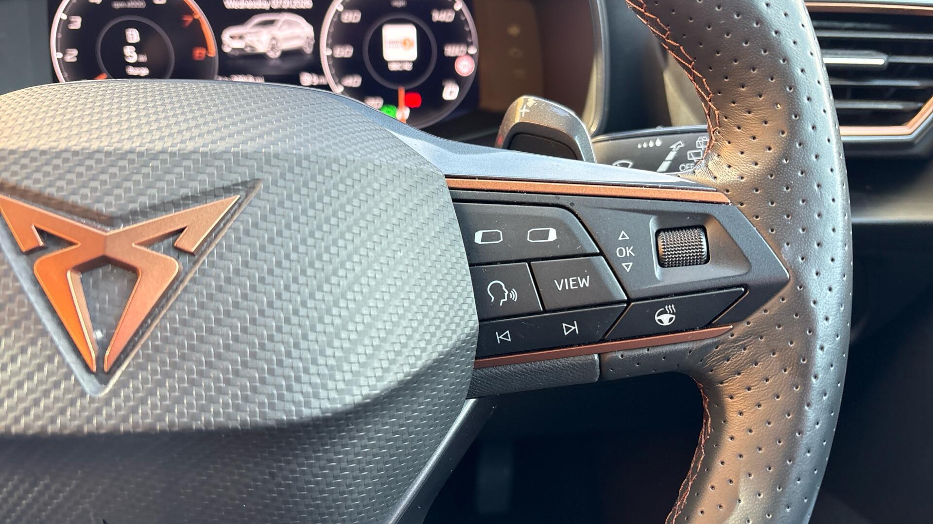 The V2 specification brings the sporty stance you expect from CUPRA, enhanced by striking 19” alloy wheels and a refined cabin featuring leather upholstery with heated front seats for year-round comfort. Parking is made effortless thanks to the rear-view camera and rear parking sensors, while seamless connectivity comes as standard with Bluetooth, Apple CarPlay and Android Auto – keeping navigation, calls and entertainment at your fingertips.