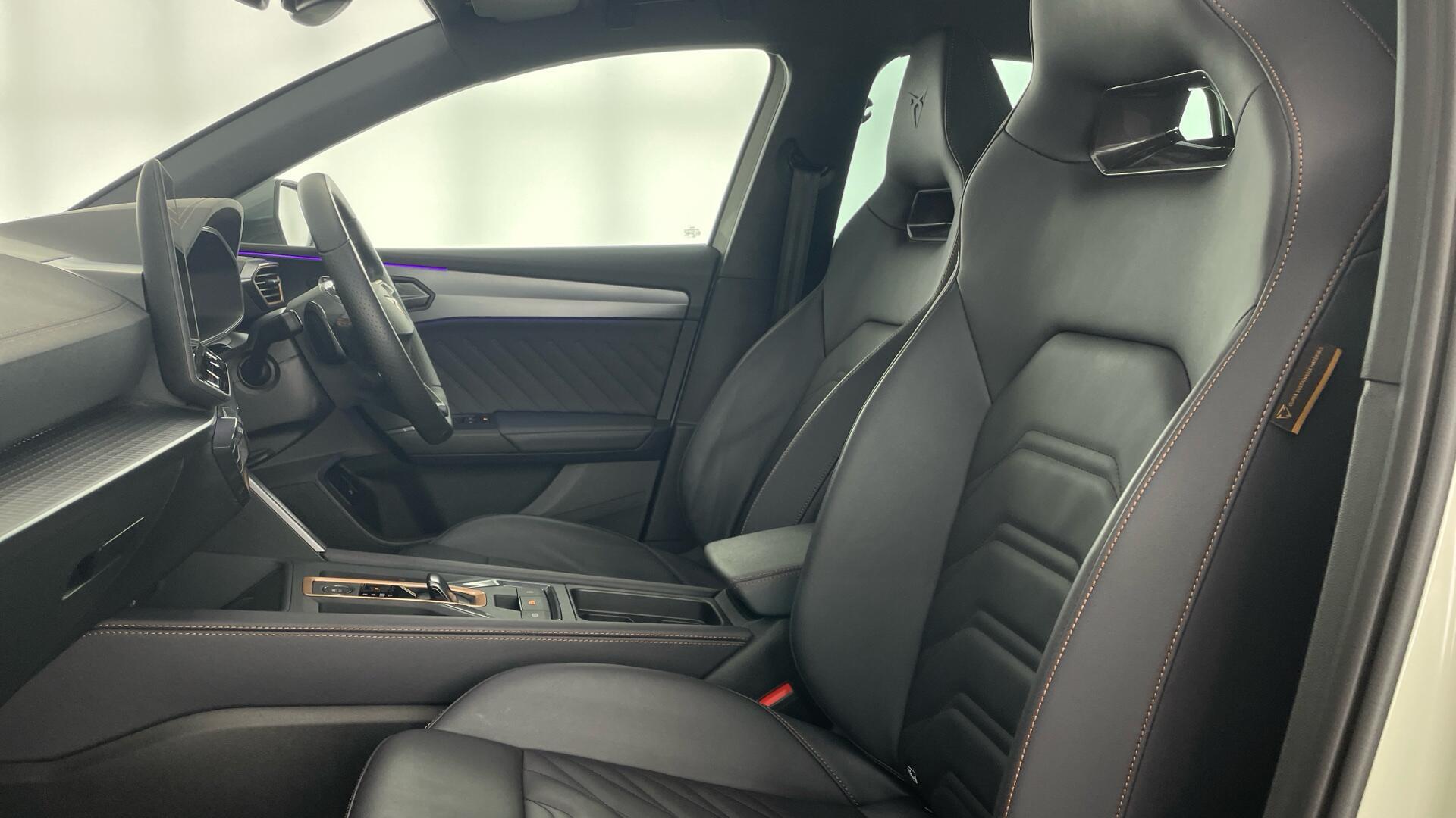 Leather - Moon slate with copper stitching embroidered CUPRA logo in headrest + metallic bucket seats